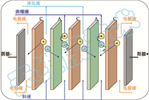 一般稱(chēng)溶液離子濃度增加的隔室稱(chēng)為濃縮室,其溶液稱(chēng)為溶液或鹽水;溶液離子濃度降低的隔室稱(chēng)為淡化室,其溶液稱(chēng)為稀溶液或淡水。從而使離子得到了分離和濃縮,海水得到淡化。